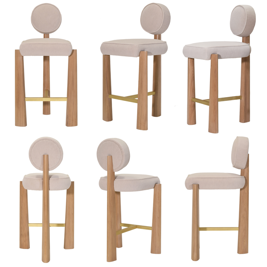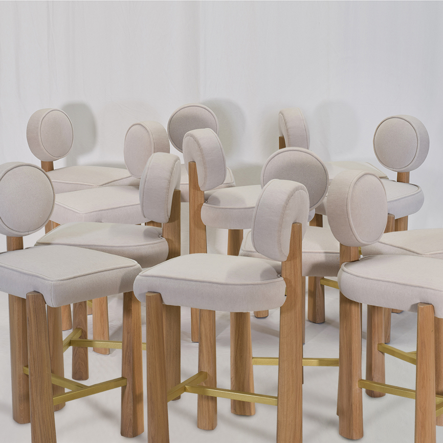 Based on the Guimauve chair, Maxime Boutillier offers a new stool, presented here in 2 different finishes and 2 different fabrics.