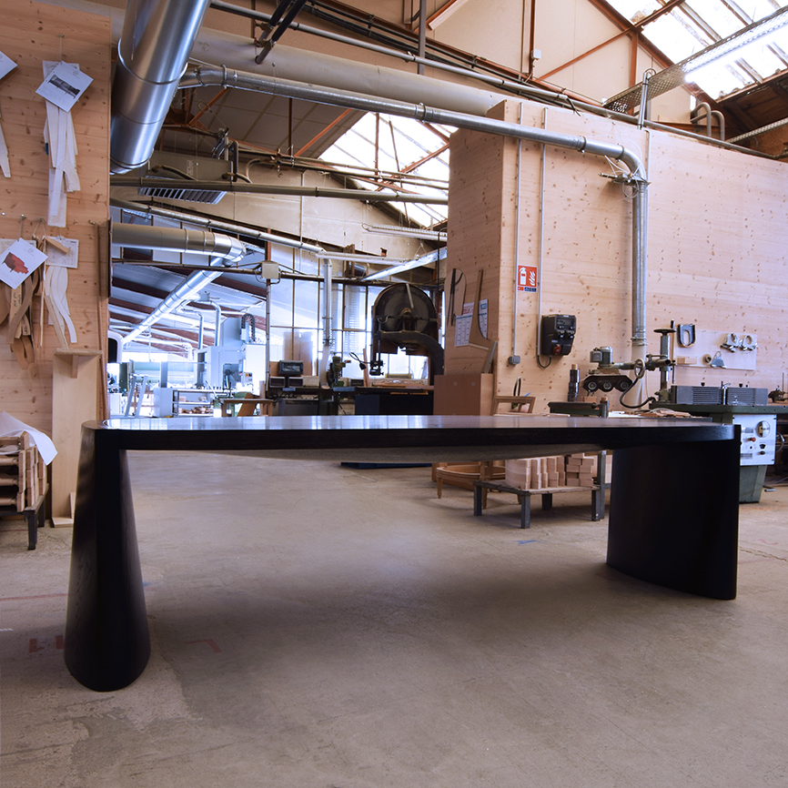 Notre table Boule modifiée pour réaliser des petites tables d’appoint pour Jean-Louis Deniot.