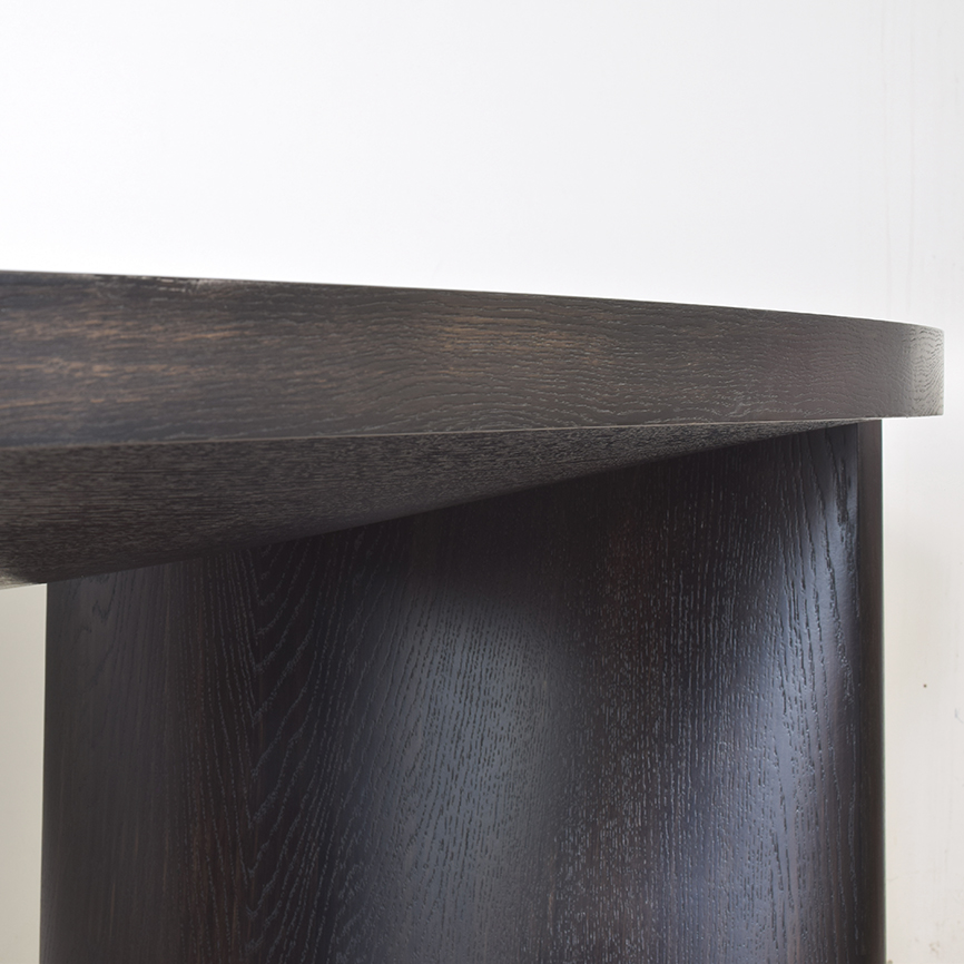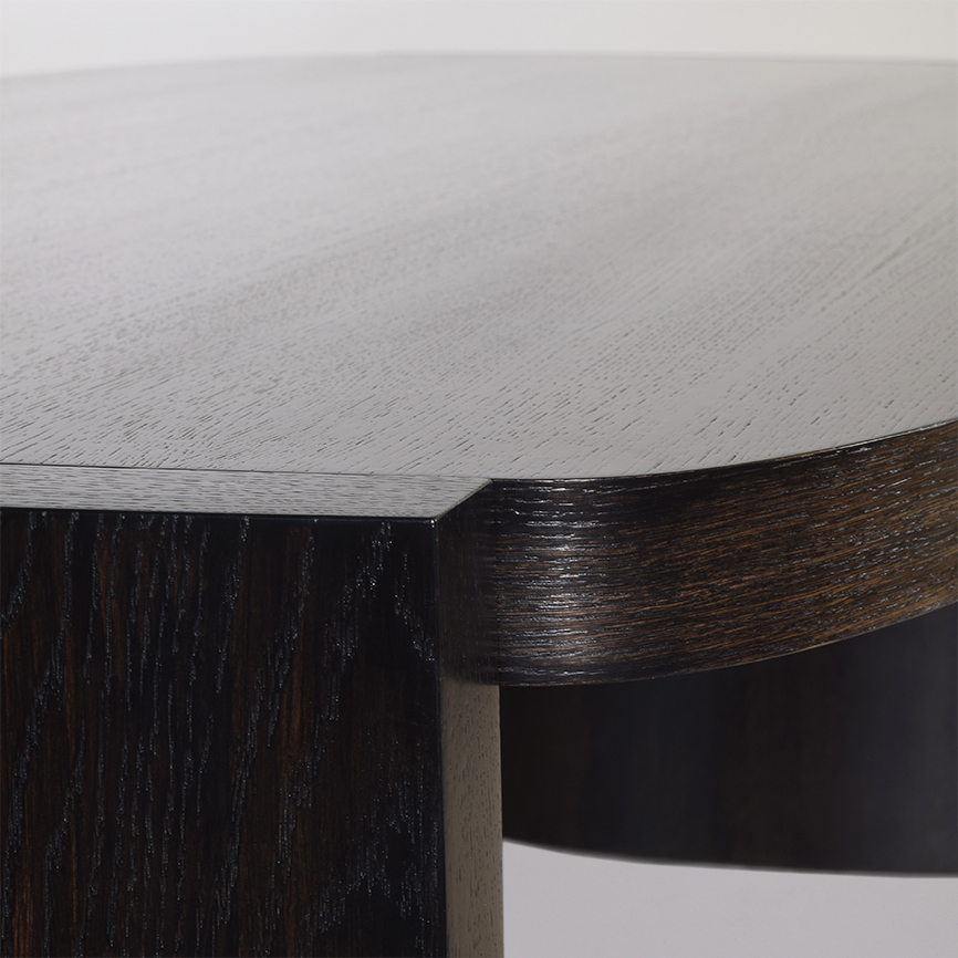 Une table de séjour en chêne massif et placage d’après un design de maxime Boutillier.