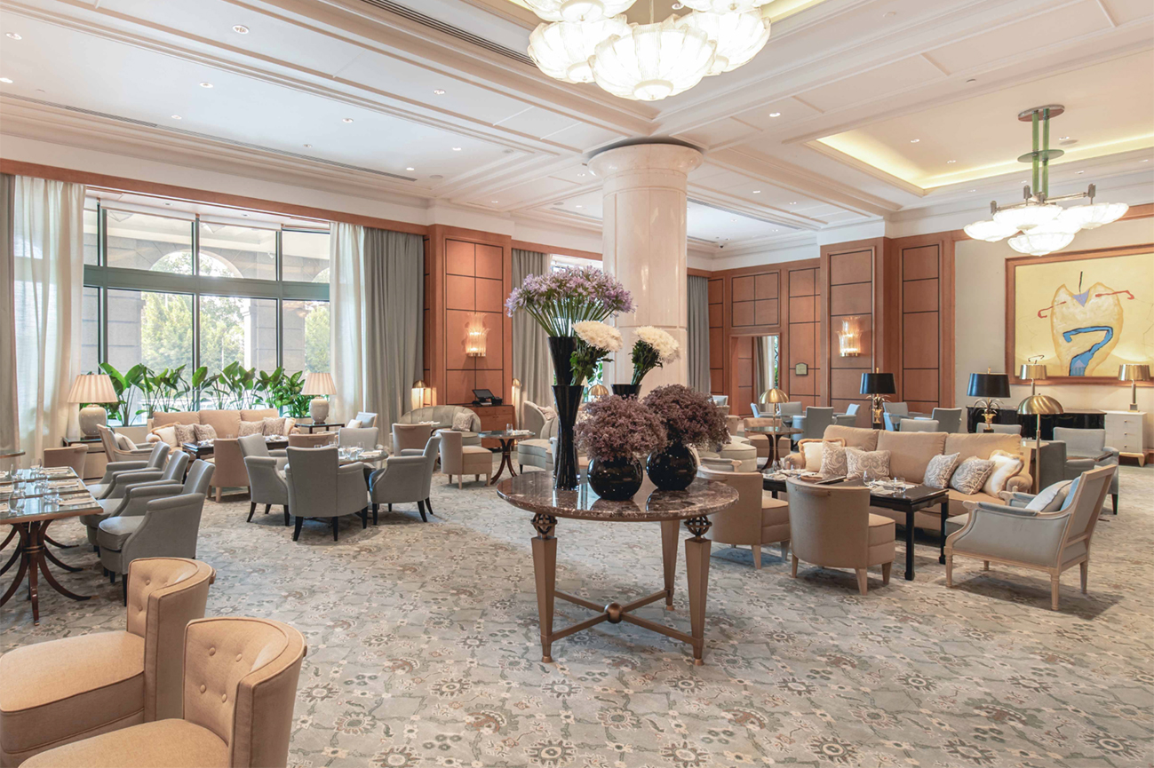 Mobilier pour l'Hôtel Four Seasons Le Nile Plaza, Le Caire Table ronde lumineuse • Pierre Counot Blandin. Bergères Louis XVI 498, chauffeuses, canapés ronds, guéridons, tables basses chinoises • Pierre Counot Blandin. Fauteuils Thed Tango et canapé Dormand • Ensemble london. Bergères Louis XVI 498, chauffeuses, canapés ronds, guéridons, tables basses chinoises, table centrale, commode • Pierre Counot Blandin. Fauteuils Thed Tango et canapé Dormand • Ensemble london. Commode, tables d’appoint, bergères Louis XVI 498 • Pierre Counot Blandin. Fauteuils Thed Tango et canapé Dormand • Ensemble london. Bridges New-York • Pierre Counot Blandin. Console Savoir Faire • Collection Pierre. Bergère et Ottoman Normandie • Pierre Counot Blandin.